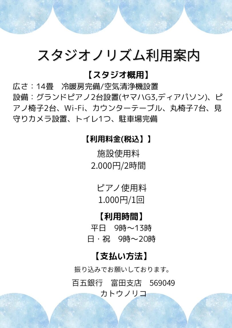 スタジオノリズムのレンタルをご検討いただきありがとうございます🎹