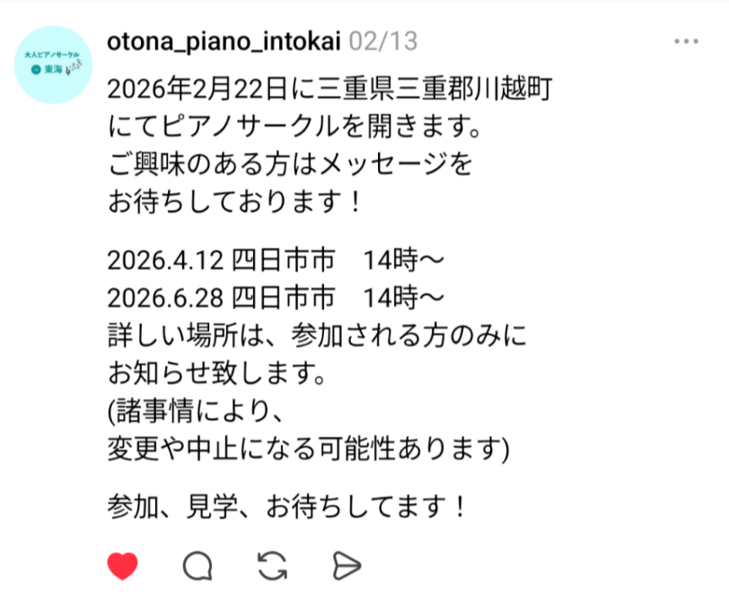 今回私は残念ながら演奏を聴くことができなかったのですが、2ヶ月に1回の会に自分の練習の成果を披露するために集まるって意欲的なメンバーさんがたくさんみえて、素晴らしい会だなと思います。