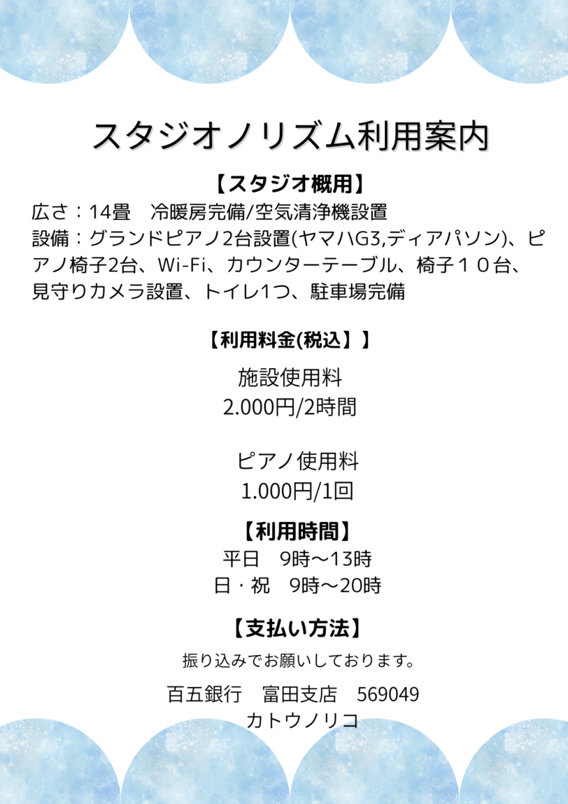 【スタジオのご利用案内とお願い】